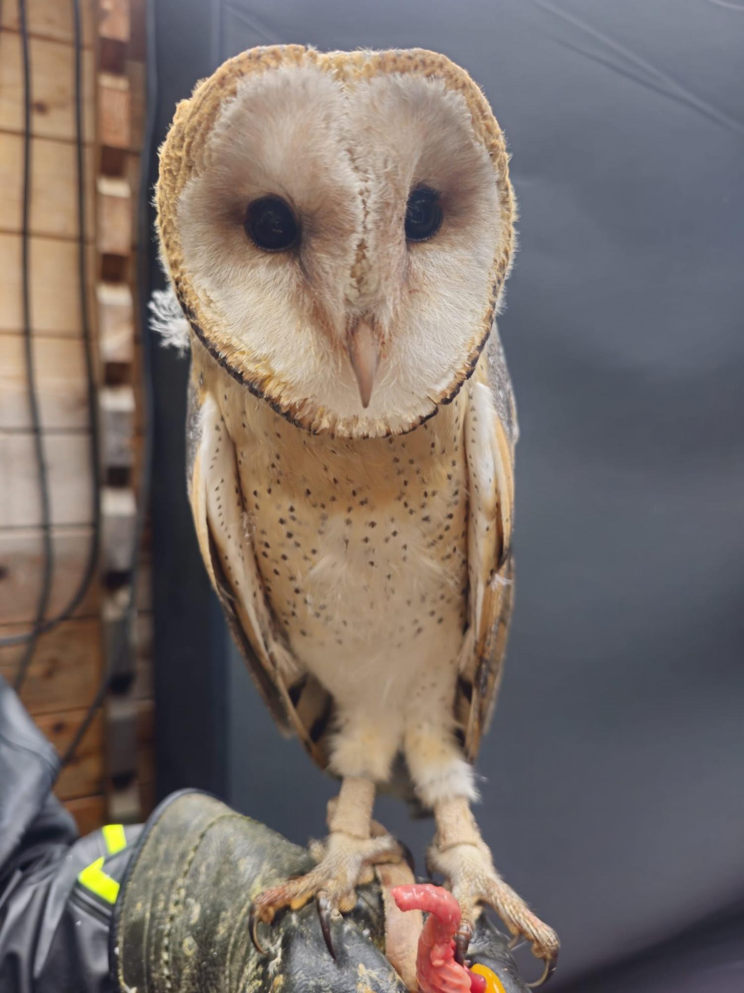 Wir geben an 3 Schleiereulen. Eine von 2019, zwei von 2024. Stehen und fressen auf Faust.