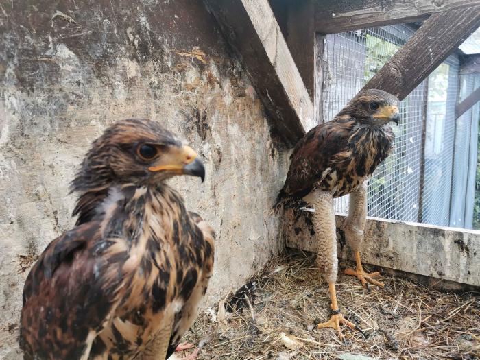 Wir geben zwei Jungvögel aus eigener Zucht ab, geschlüpft am 05.08.2025. Die Jungvögel sind kräftig und gesund. Besonders hervorzuheben : Die Elterntiere werden jagdlich geführt auf Elster, Krähen und das Weib zusätzlich auf Nilgans was sich positiv auf Veranlagung und Charakter der Vögel auswirkt.